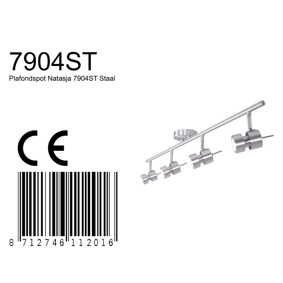 4 lichts Plafondspot Natasja 7904ST Staal Inclusief lichtbronnen
