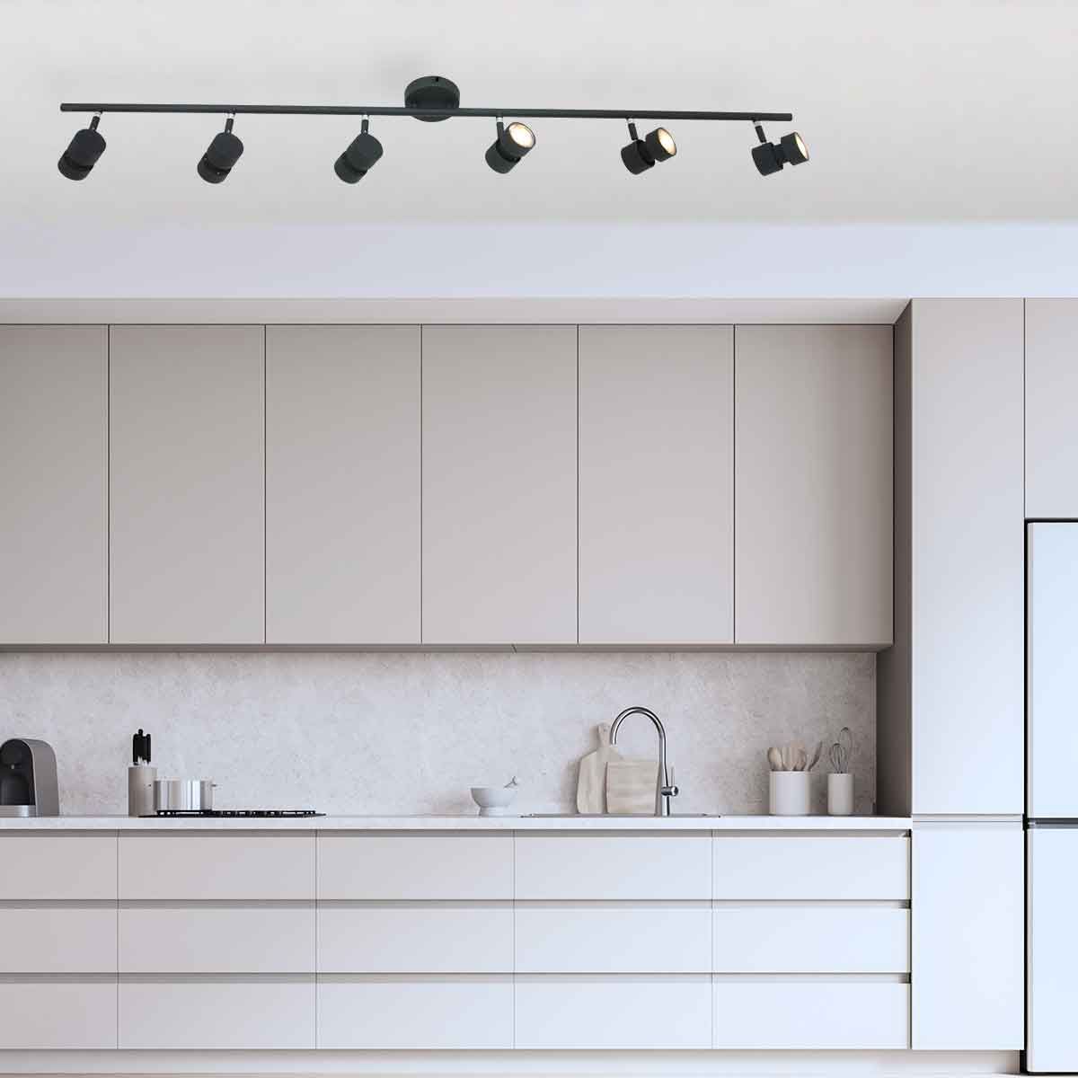 Ontdek de eigentijdse 6-lichts zwarte spot 7906ZW uit de Natasja serie. Uitgerust met GU10 fitting, wordt deze spot geleverd met 6 lichtbronnen van 4,9 Watt. Met dim-to-warm functie variërend tussen 2200 en 2700 Kelvin. Vervaardigd uit hoogwaardig metaal. Deze spot is dimbaar met behulp van een externe dimmer.