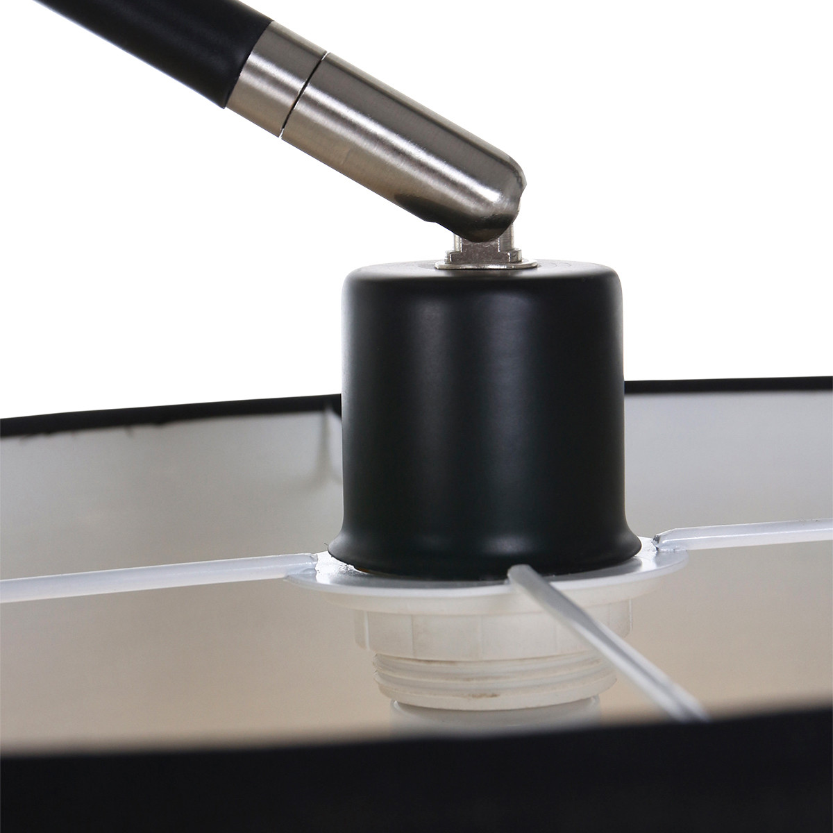 De lamp is aan en uit te zetten met een vloerschakelaar. De omvang van de voetplaat is 35 centimeter en de totale hoogte van de booglamp is 185 centimeter. Bestel de 7976ZW vloerlamp nu online met de service en garantie van een servicepunt bij u in de buurt. Dit product is samengesteld uit armatuur 3409ZW en kap K7976SS.