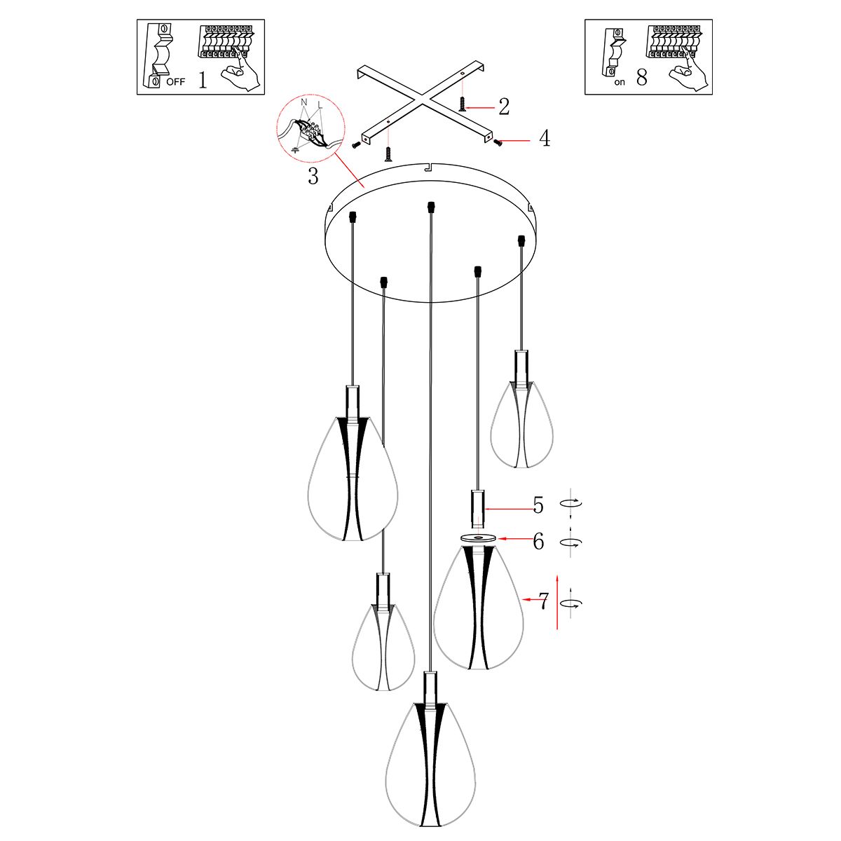 ✔ Gecontroleerde lichtbundeling – In de druppelvormige glazen zit een witte cilinder, die het licht subtiel naar beneden leidt en schittering vermindert.