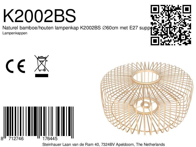 De K2002BS is voorzien van een support met een E27 fitting gat, waardoor hij eenvoudig te combineren is met verschillende soorten lampen. Of je nu een staande vloerlamp, een mooie hanglamp of een sfeervolle schemerlamp wilt verfraaien, deze lampenkap past perfect en voegt een vleugje verfijning toe aan elke ruimte.
