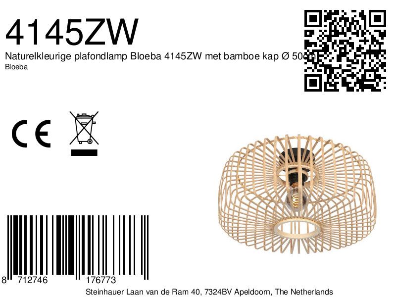 Breng een vleugje natuurlijke charme in uw interieur met de Naturelkleurige Plafondlamp Bloeba 4145ZW. Deze plafondlamp valt op door zijn elegante bamboe lampenkap in een zachte, naturel kleur. Met een doorsnede van 50 cm en een hoogte van 21 cm voegt deze lamp een stijlvolle en verfijnde uitstraling toe aan elke ruimte.