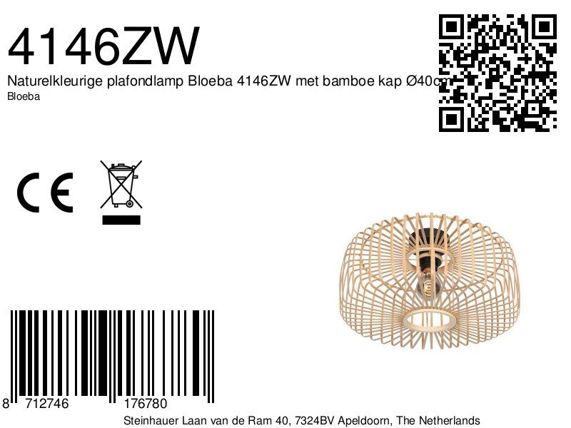 De open structuur van de bamboe kap creëert een prachtig lichtspel, dat een warme en uitnodigende sfeer in uw woonkamer, slaapkamer of eetkamer brengt. De Bloeba 4146ZW biedt niet alleen functionele verlichting, maar ook een esthetisch accent dat uw interieur verrijkt.