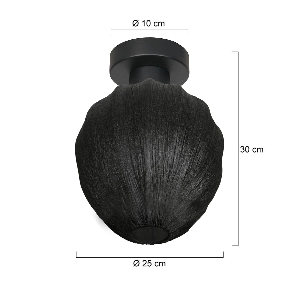 De kap is vervaardigd van transparant zwart linnen in een elegante druppelvorm van 25 cm breed en 25 cm hoog. De open geweven structuur van het materiaal verspreidt het licht op een warme en sfeervolle manier. Dankzij de gemonteerde E27 support is de kap perfect afgestemd op het armatuur, dat standaard wordt geleverd met een E27 fitting (lichtbron niet inbegrepen).