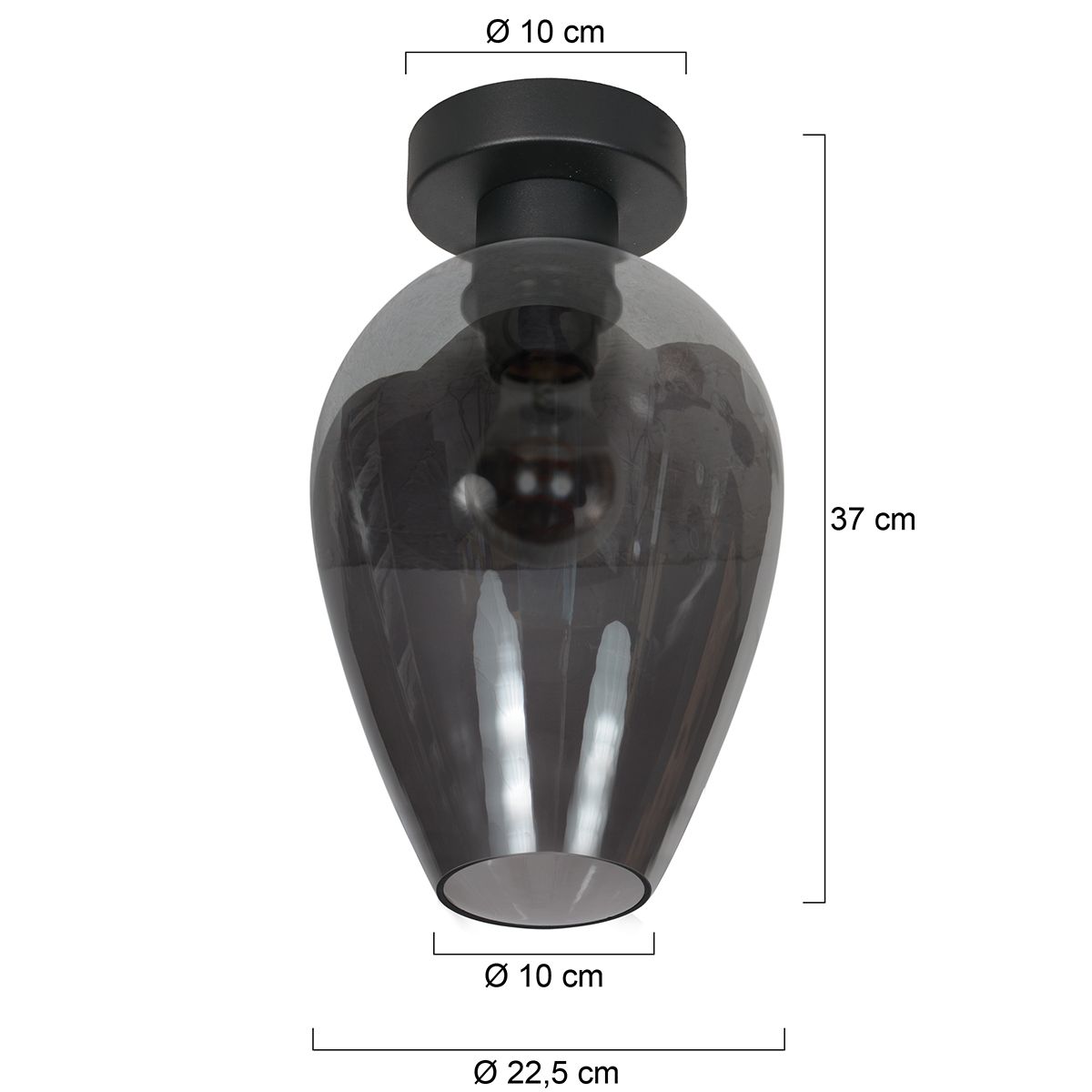 De Bloeba 4371ZW is een stijlvolle plafondlamp die warmte, elegantie en karakter samenbrengt. Deze lamp is een combinatie van het zwarte basisarmatuur Bloeba 4129ZW en de opvallende, handgemaakte glazen kap I15465S in een elegante druppelvorm. Met zijn royale afmetingen van 22,5 cm in diameter en 33 cm hoog is dit rookglas een echte blikvanger die elke ruimte verrijkt met sfeer.