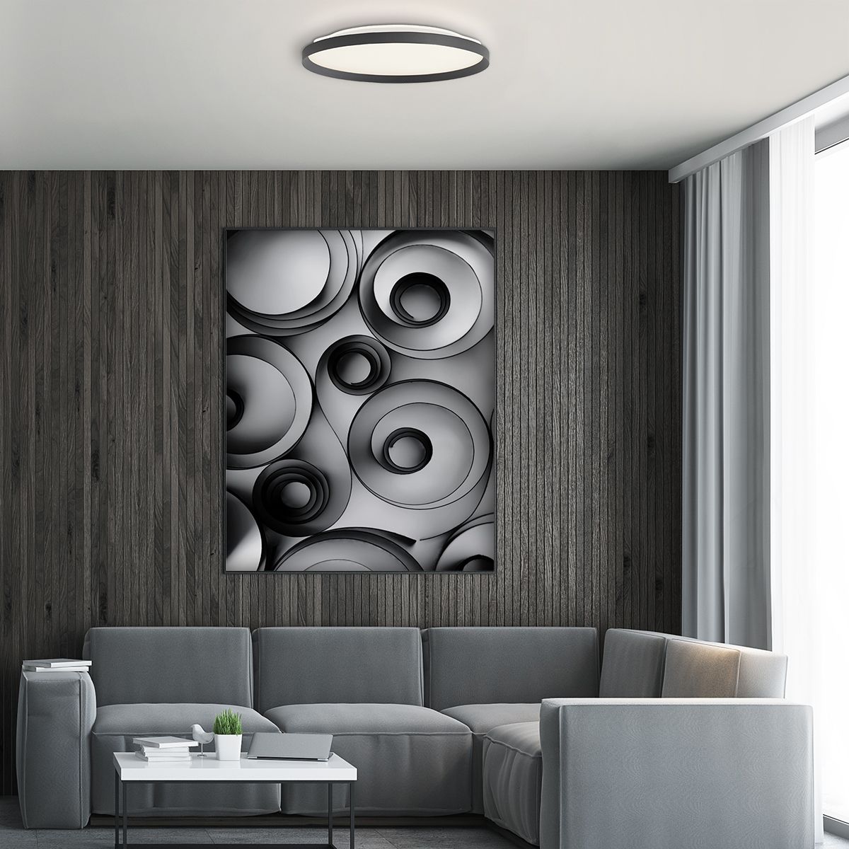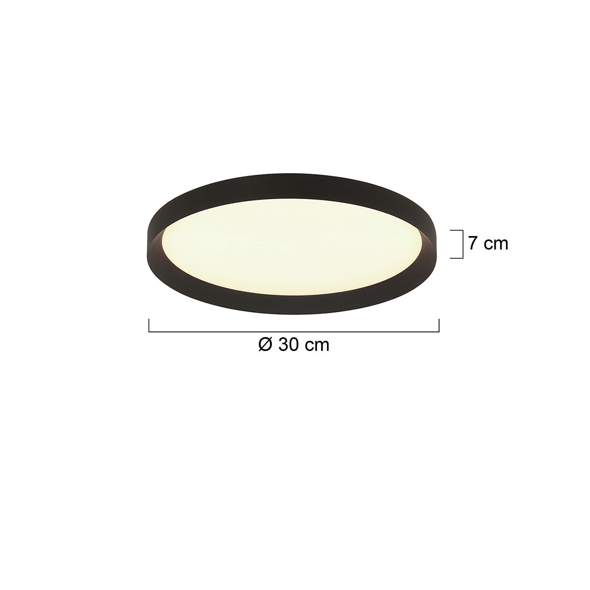 Met een diameter van 30 cm en een hoogte van slechts 7 cm past deze plafondlamp perfect in zowel kleinere ruimtes als grotere interieurs waar meerdere lampen gecombineerd kunnen worden. Het geïntegreerde LED-systeem van 20W levert 2000 lumen met een prettige lichtkleur, die dankzij een externe dimmer naar wens is aan te passen. Zo creëer je altijd de juiste ambiance, van praktisch helder tot sfeervol gedimd.