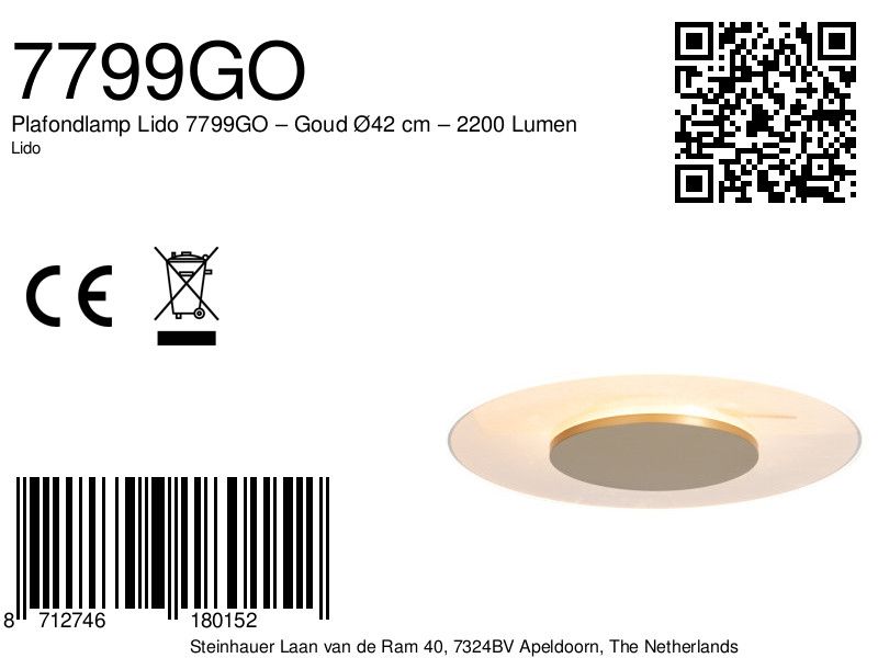 Ontdek plafondlamp 7799GO uit de Lido-serie: een moderne blikvanger met transparante buitenring en goudkleurig middelpunt. Perfect passend in een eigentijds interieur.
