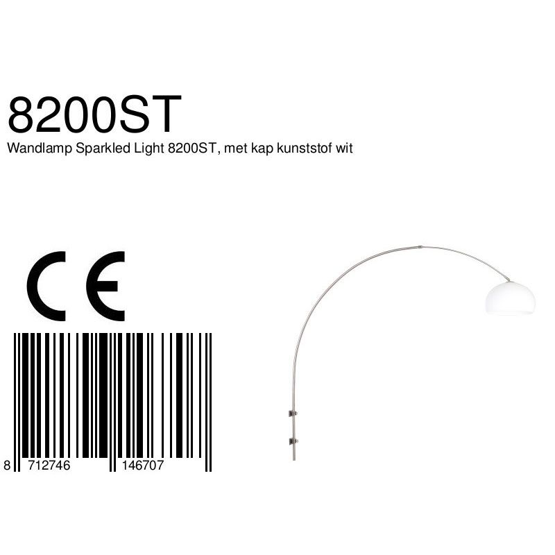 Staalkleurige boog / wandlamp Sparkled Light 8200ST met wit kunststof bol kap