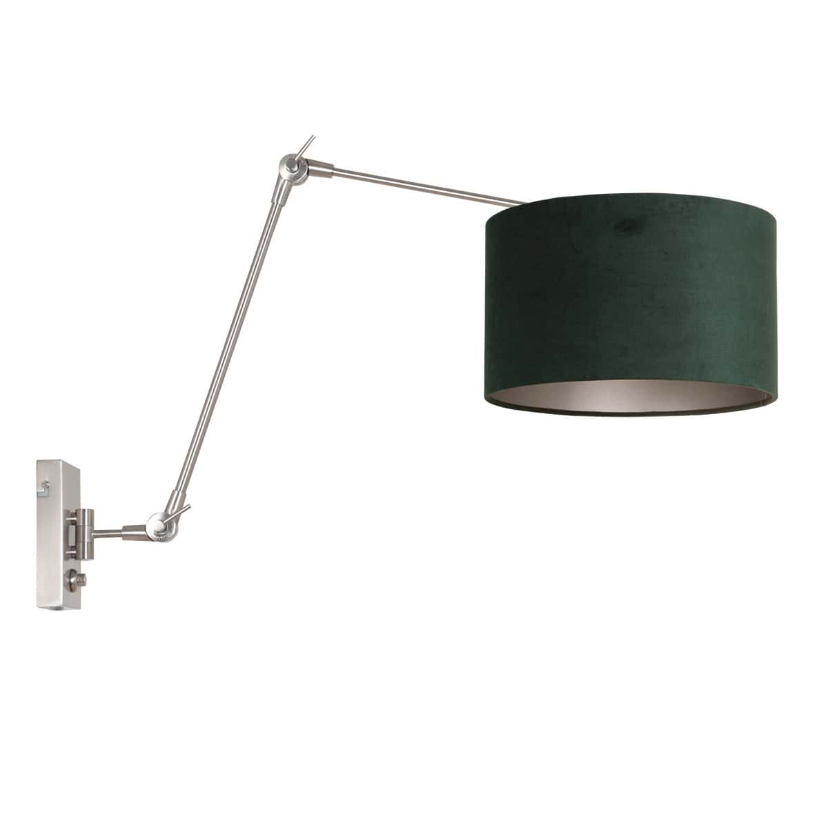 Staalkleurige wandlamp Prestige Chic 8109ST met groen velours kap