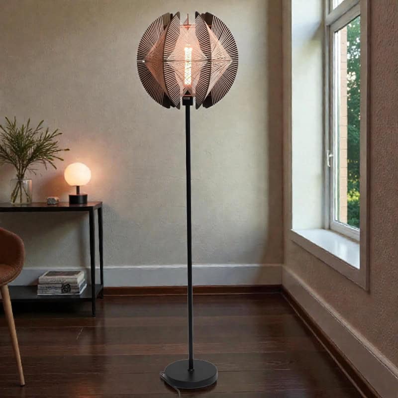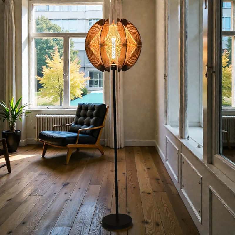 Vloerlamp Jessica Walnut 1m54 hoog 40cm doorsnede e27 hout en touw 05-HL4940-77 ETH