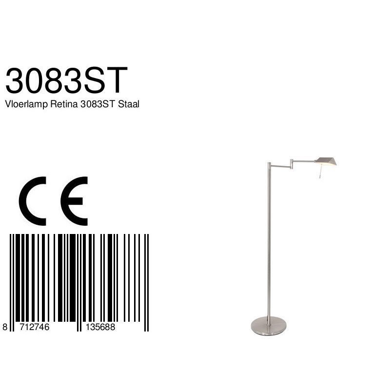 Vloerlamp Retina 3083ST Staal in hoogte verstelbaar