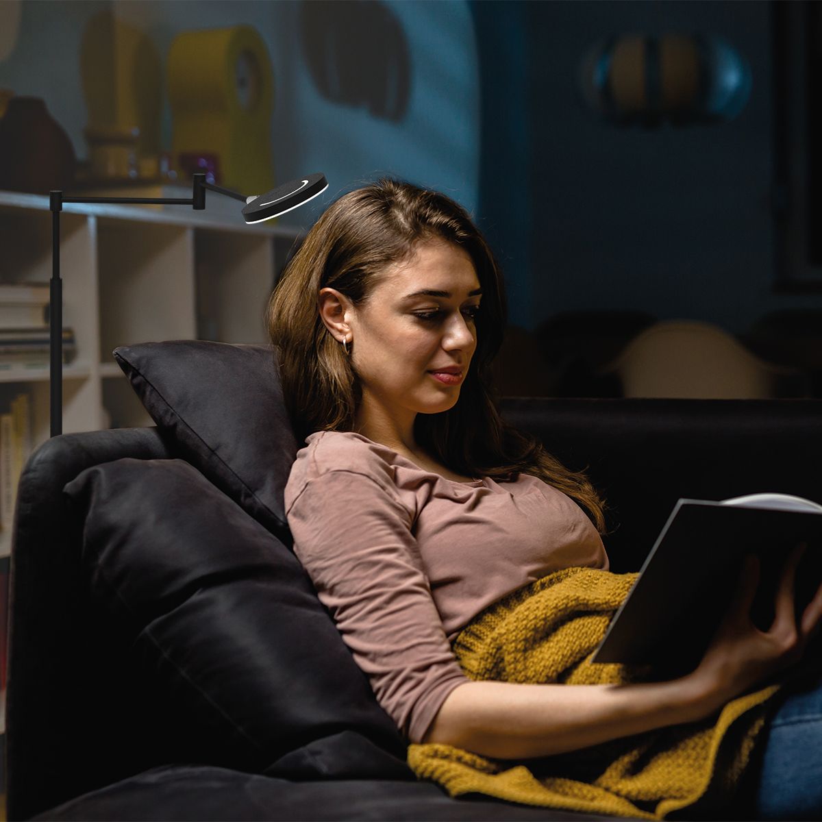 De oplaadbare, dimbare en lichtkleur instelbare zwarte vloerlamp met een zijarm, is een perfecte aanvulling op elk eigentijds interieur.