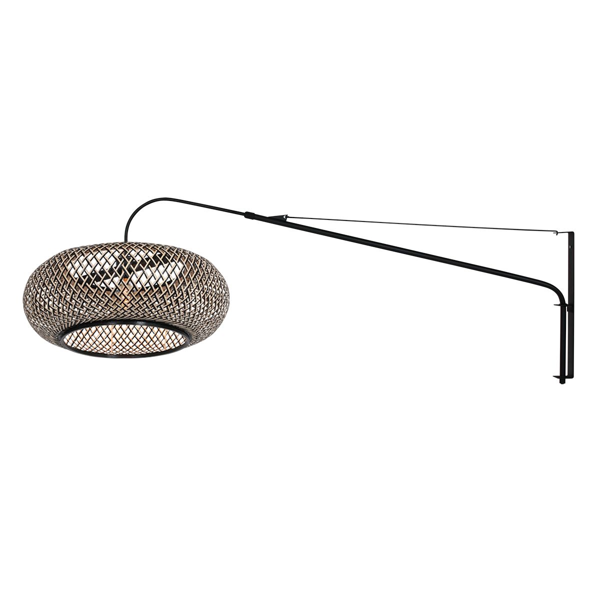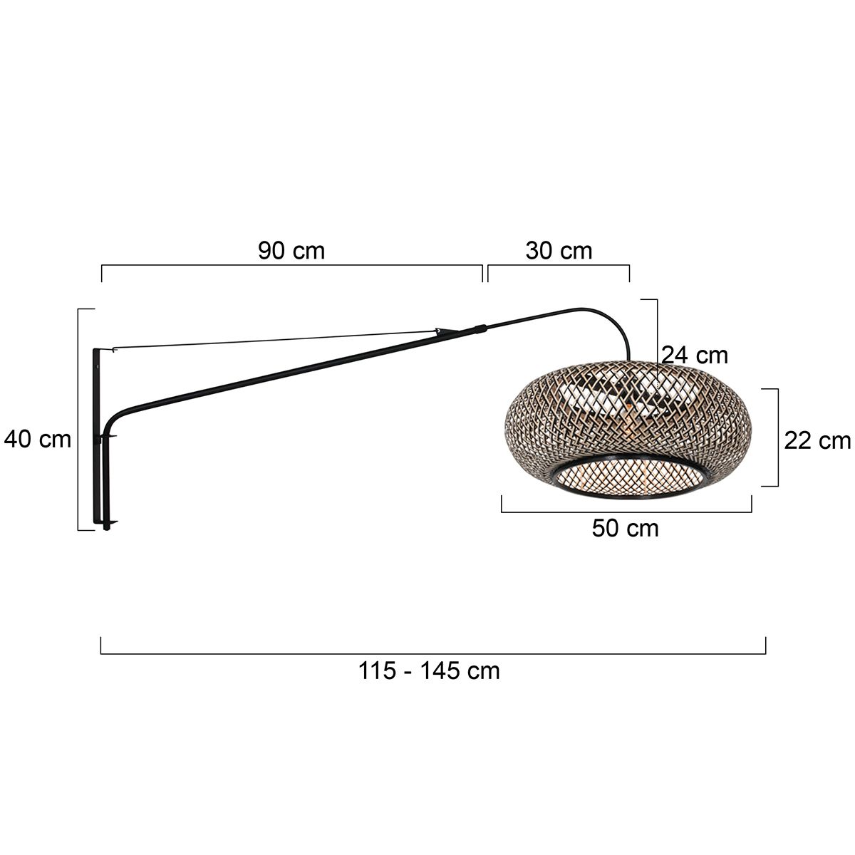 Dankzij de verstelbare reikwijdte van 120 tot 150 cm biedt deze lange wandlamp veel flexibiliteit. Ideaal boven een zithoek, eettafel of werkplek. De bediening verloopt via een schakelaar in het 170 cm lange snoer. De lamp is voorzien van een E27 fitting en geschikt voor lichtbronnen tot 40 Watt (niet inbegrepen)