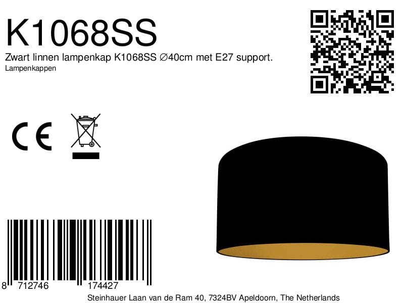 De zwart linnen lampenkap mwt goudkleurige binnenkant K1068SS van Steinhauer verlichting is een luxe en stijlvolle toevoeging aan elk interieur. Deze prachtige ronde lampenkap is gemaakt van fijn linnen geplakt op wit PVC op een metalen frame wat zorgt voor een elegante uitstraling. Met een diameter van 40cm en een hoogte van 20cm biedt deze lampenkap de perfecte proporties voor diverse toepassingen.