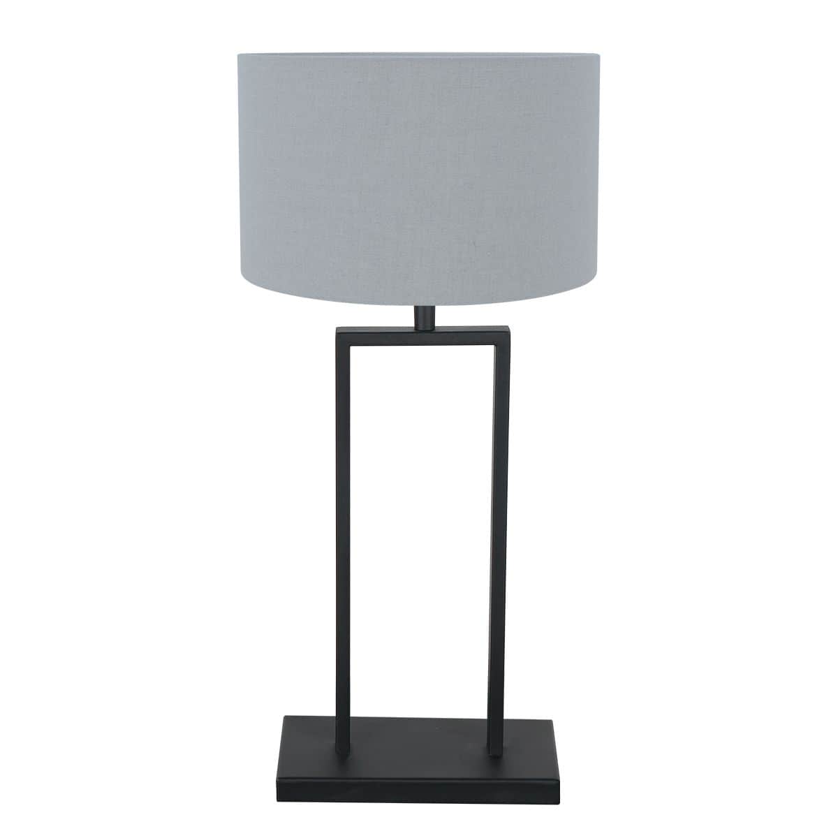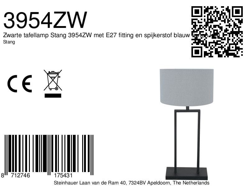Zwarte tafellamp Stang 3954ZW met E27 fitting en spijkerstof blauw linnen kap