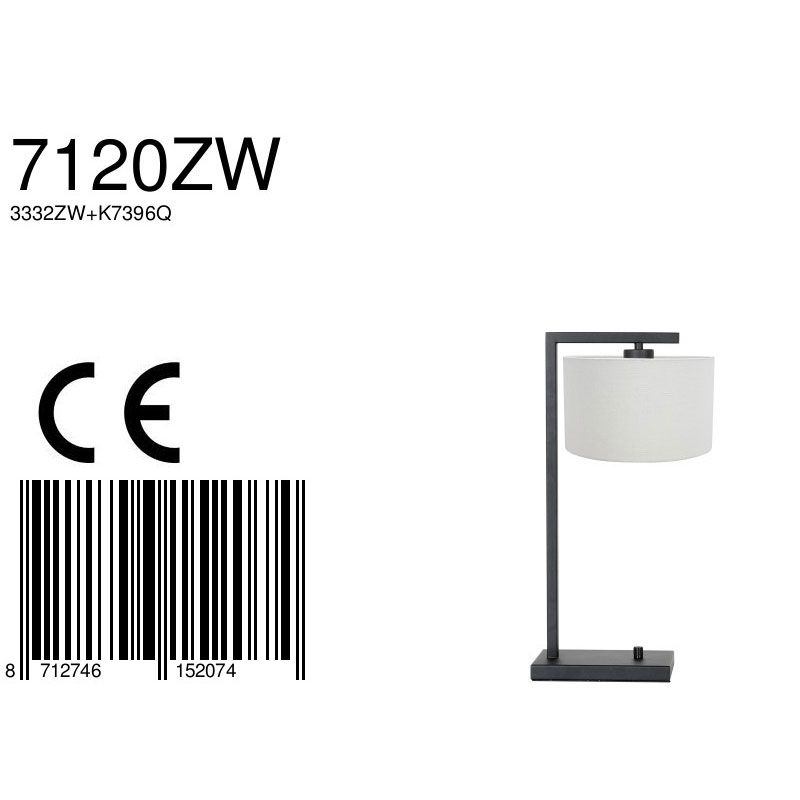 Zwarte tafellamp Stang 7120ZW met wit grof linnen kap