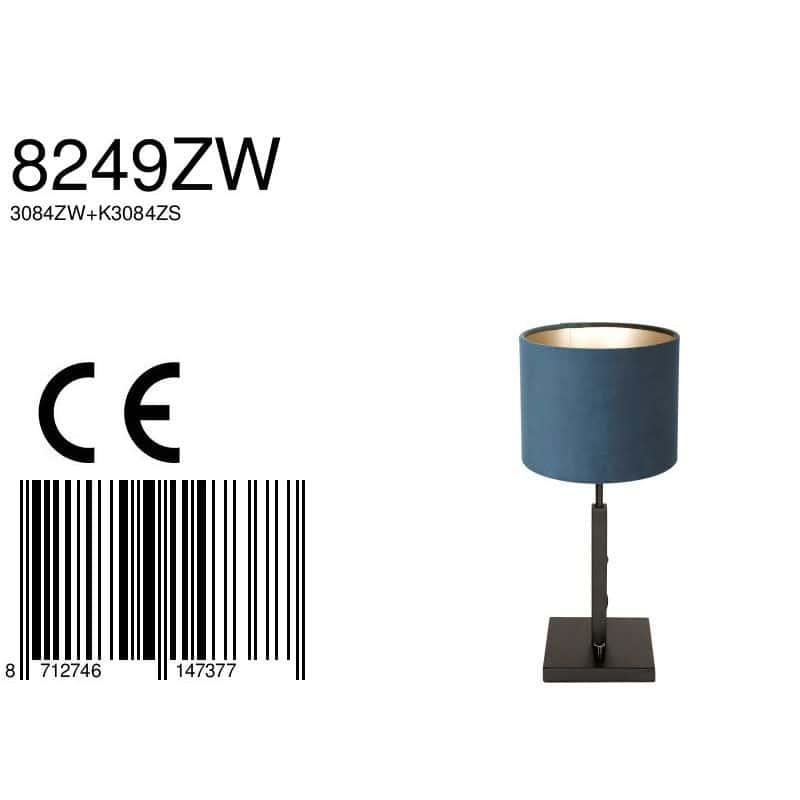 Het tafellampje heeft een totale hoogte van 40 centimeter. Dit artikelnummer wordt geleverd met een blauw velours stof kap met een doorsnede van 20 centimeter. Bestel de 8249ZW tafellamp nu online en profiteer van de service en garantie van een servicepunt bij jou in de buurt.