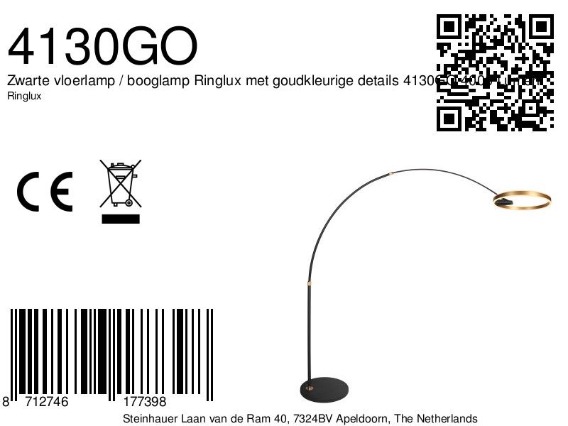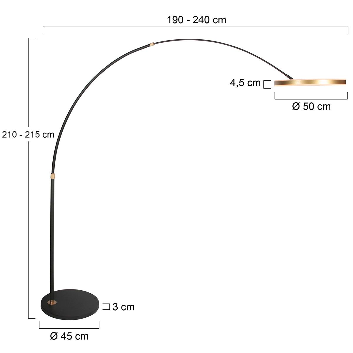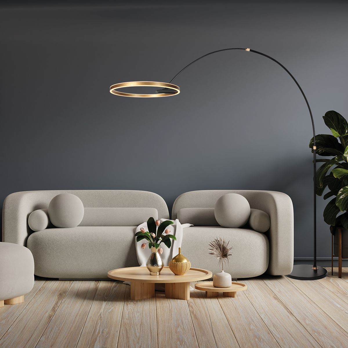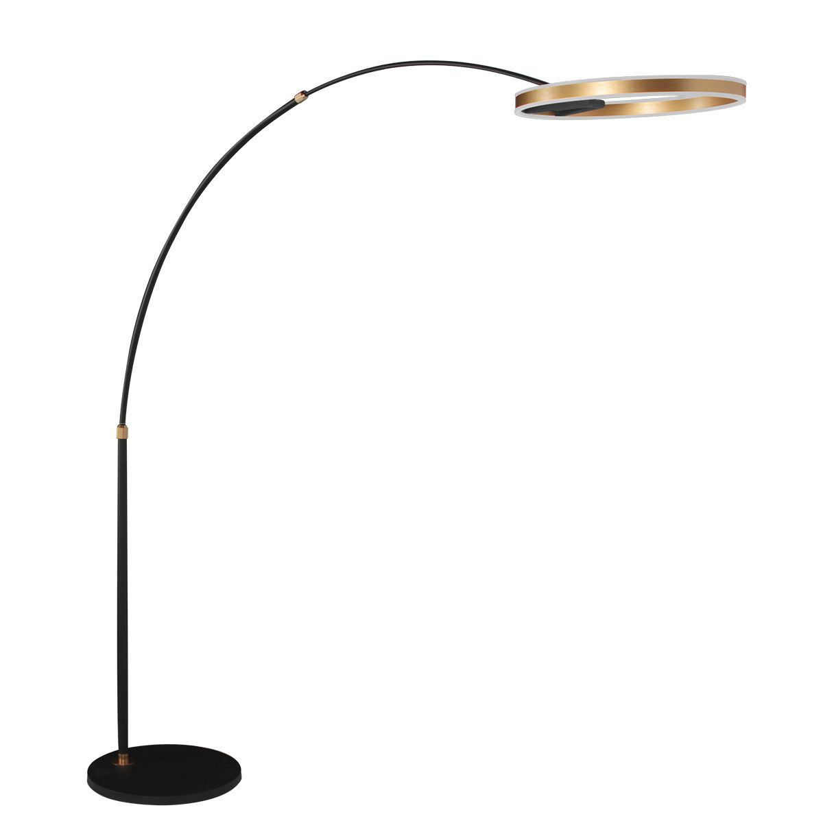 Zwarte vloerlamp / booglamp Ringlux met goudkleurige details 4130GO 4000 Lumen