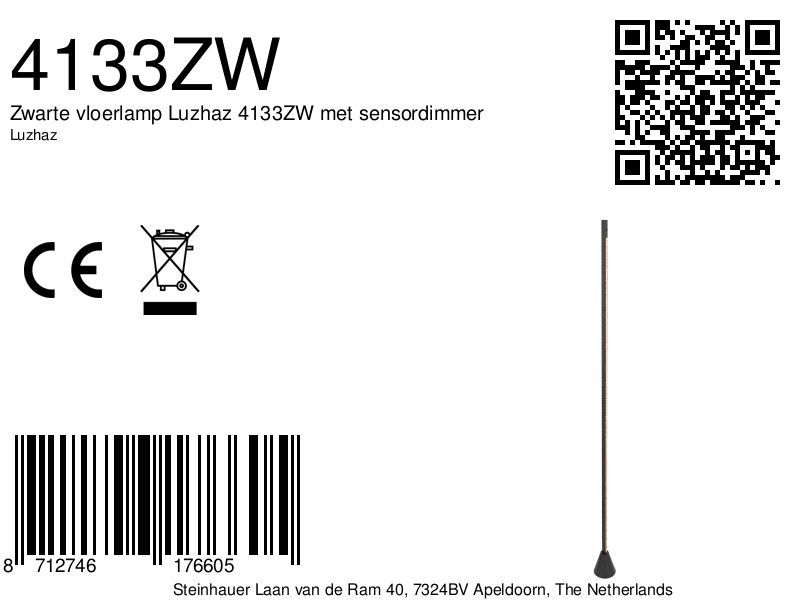 Zwarte vloerlamp Luzhaz 4133ZW met sensordimmer