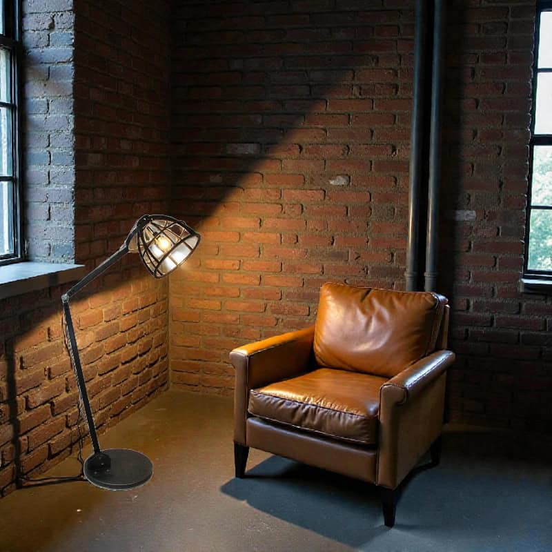De lamp kan in verschillende hoogtes knikken en kan dus als sfeerlamp in de hoek en als leeslamp fungeren.